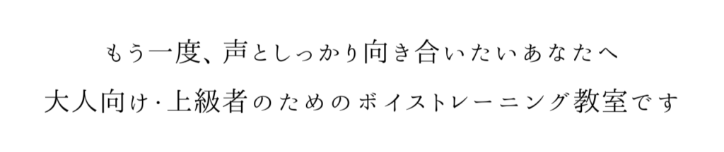 もう一度きちんと声と向き合いたい方、フースラーメソードに一度挫折した方、すでに技術を持ちながら伸び悩みを感じている方のための「自分の声を理解する」大人向け・上級者のためのボイストレーニングです。