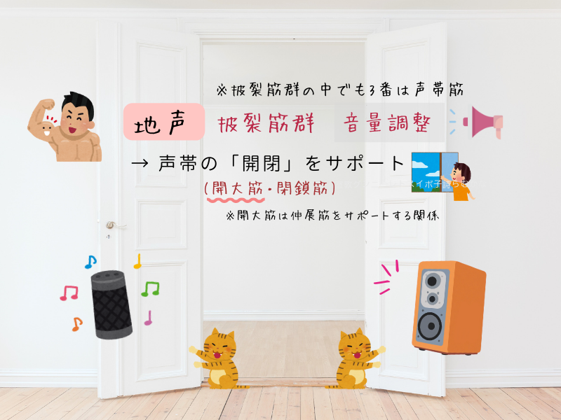 声帯の「開閉」をサポートする筋肉、披裂筋群を使って出します。(※1)