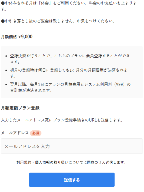 ※支払い期限が切れた場合は、自動でプラン解約となります。 - 対面レッスンをご希望の場合、各コースのレッスン料金に加えて、スタジオ/カラオケボックスのレンタル料が別途かかります。